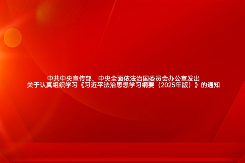 中央精神2025-11-21近日,中共中央宣传部、中央全面依法治国委员会办公室发出关于认真组织学习《习近平法治思想学习纲要(2025年版)》的通知。全文如下:党的十八大以来,以习近平同志为核心的党中央从坚持和...