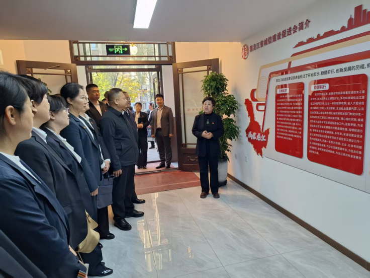 随后,党员干部来到黑龙江省诚信建设促进会,在其党支部书记、会长的介绍下,了解了该协会从建立到发展壮大的历程。黑龙江省诚信建设促进会以党建带会建,健全党建工作责任体系,创建“诚信路上党旗红”党建品牌,发挥党建联动整体功能作用,有效引导会员企业把党建工作成果转换为诚信经营效能,为诚信龙江建设注入了企业合力。参观结束后,与会党员干部共同围绕“如何发挥党建引领作用,切实履行职责,推进行业高质量发展”开展交流,大家一致表示,要充分借鉴先进经验,强化党建引领,立足工作职责,推进法治政府、诚信政府建设,助力企业诚信经营、健康发展。