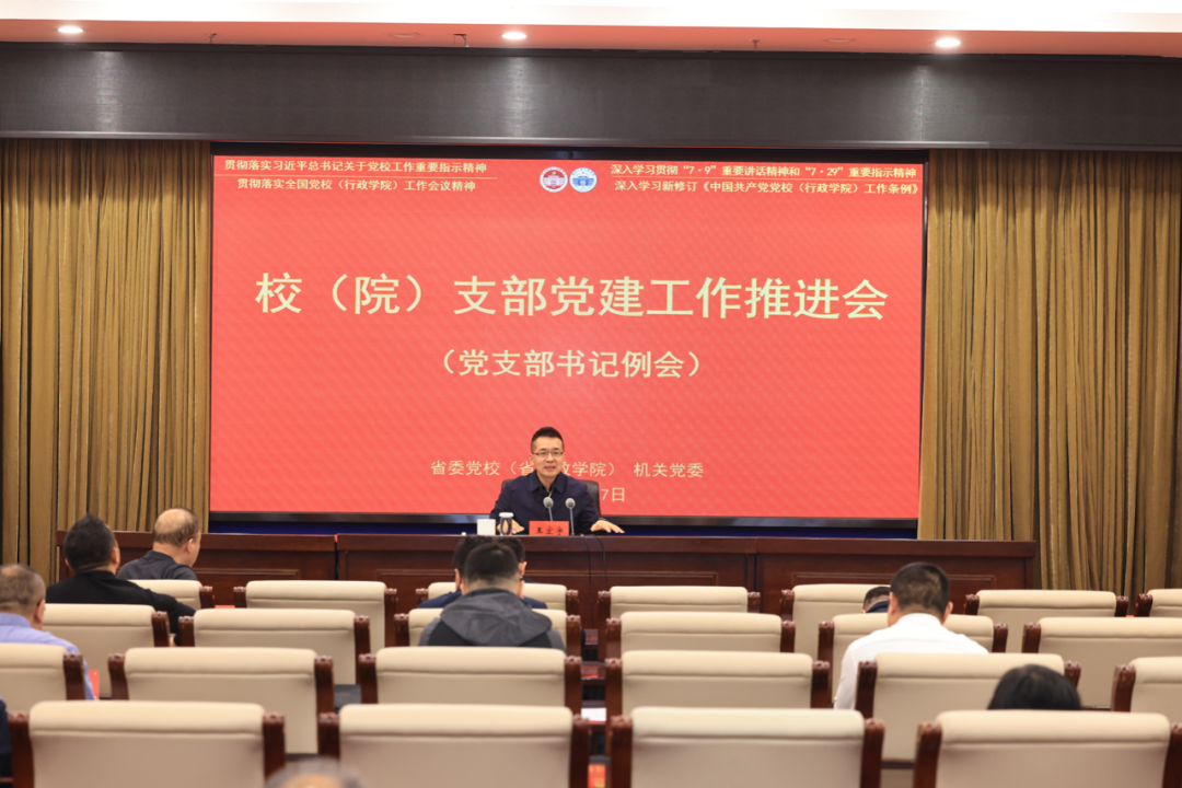 在党群实务环节,副校(院)长王宏宇主持召开了校(院)支部党群工作推进会(支部书记例会),围绕学习贯彻习近平总书记关于党校工作的重要论述、重要指示精神和全国党校(行政学院)工作会议精神,持续深化干部能力作风建设,推动未巡先查先改,加强支部标准化建设,培育支部党建品牌,推进以党建带群建,强化青年理论武装,丰富校园文化活动等年度党群工作重点任务进行了提示和讲解。校(院)全体党支部书记参加培训会议。