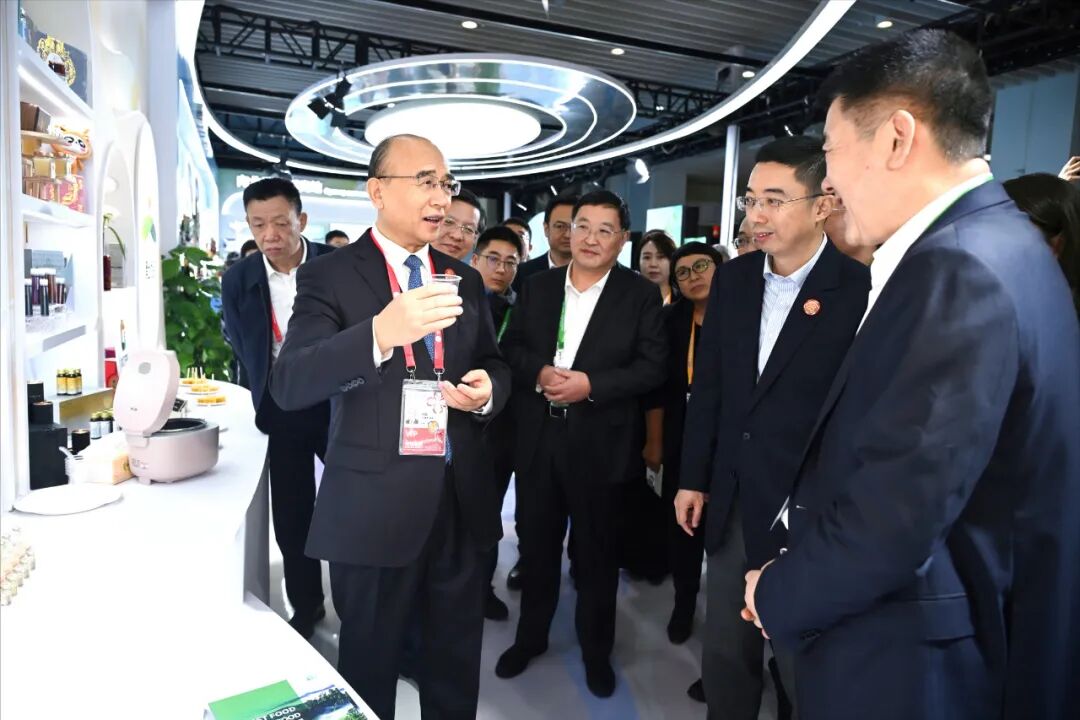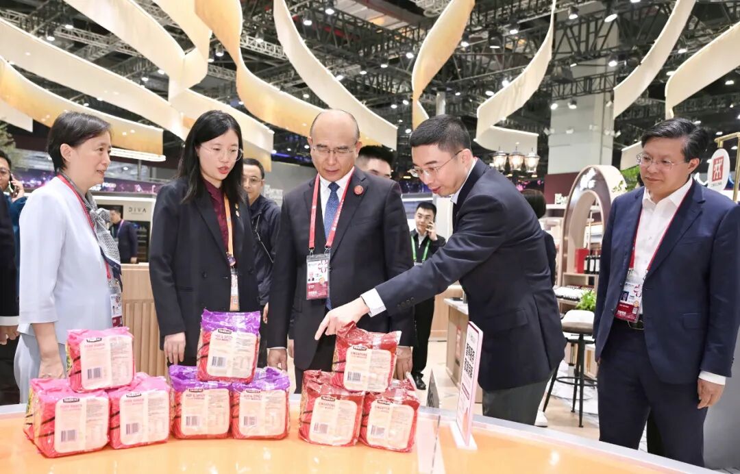 在上海国家会展中心,许勤先后来到光明乳业、泰国正大集团、新加坡丰益公司等展位,与参会企业代表交流。