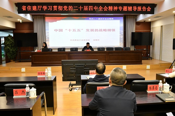 11月18日,省住建厅举办学习贯彻党的二十届四中全会精神专题辅导报告会,省委党校宋艳玲教授作专题辅导报告。报告会后,厅党组书记、厅长高起生主持党组理论学习中心组学习会议,围绕住建领域学习贯彻党的二十届四中全会精神进行了学习研讨。