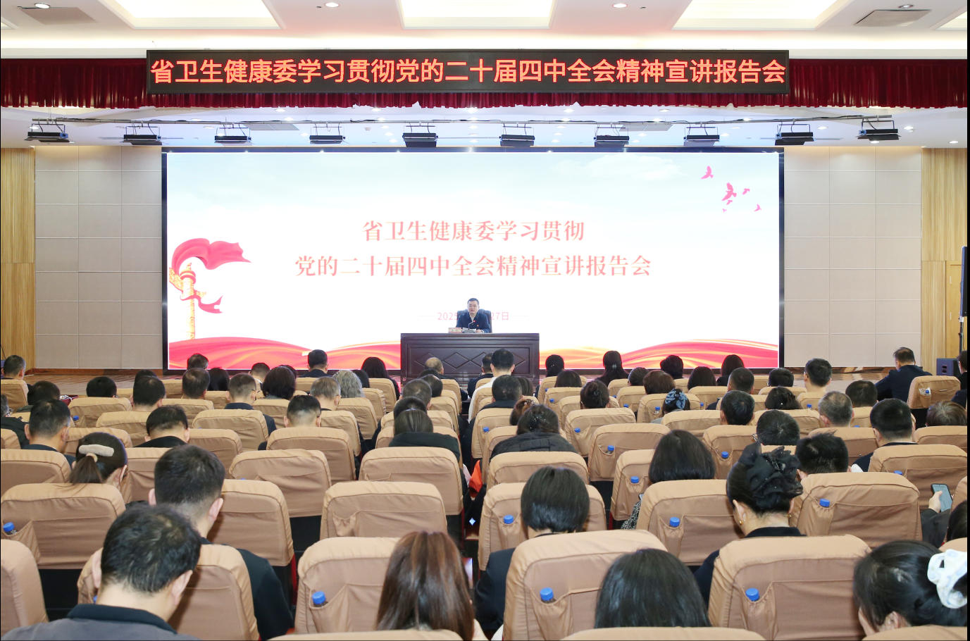 11月27日,省卫生健康委召开学习贯彻党的二十届四中全会精神宣讲报告会。省委宣讲团成员、省卫生健康委党组书记、主任栾枫作宣讲报告。