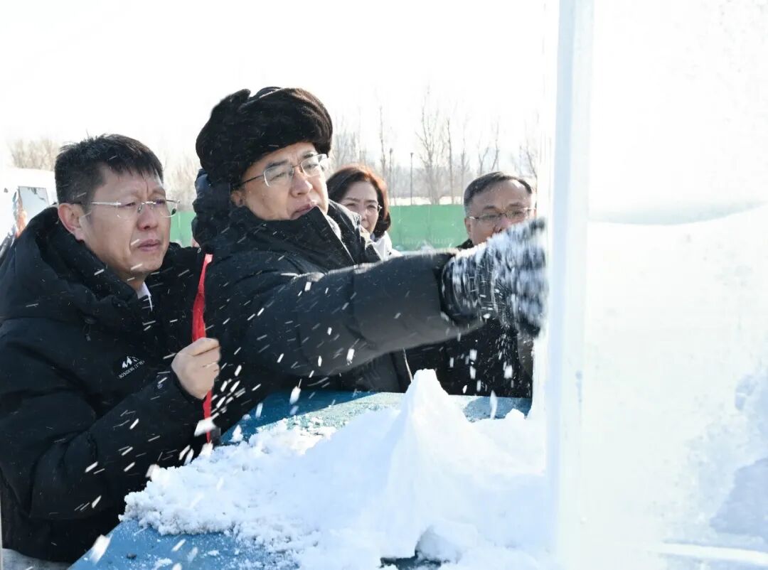 许勤来到冰雪大世界施工现场了解工期进展。
