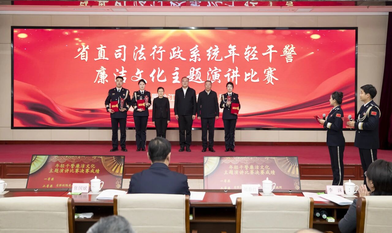 11月27日,省司法厅举办省直司法行政系统年轻干警廉洁文化主题演讲比赛决赛,以铿锵之音讲述廉洁故事,用赤诚之心诠释青春担当。省司法厅党委书记、厅长、省监狱管理局第一政委崔永洪,省委政法委副书记、一级巡视员张国斌,省直机关工委委员、省直机关纪检监察工委书记胡春红出席活动。