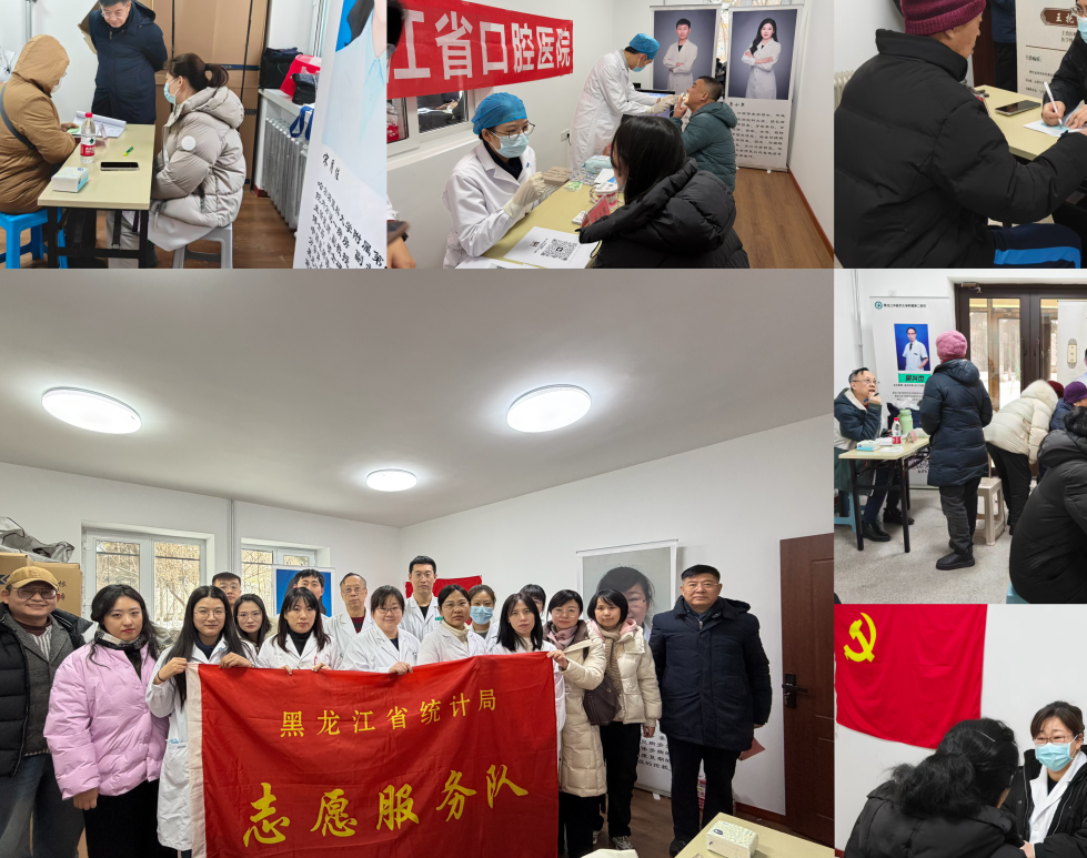 义诊现场,省统计局党员干部与社区志愿者一同引导居民有序咨询。来自哈尔滨医科大学附属第一医院、黑龙江省中医药大学附属第二医院和黑龙江省口腔病防治院等医疗机构的专家团队,为居民提供了常见病与慢性病咨询、初步诊疗建议、合理用药指导等个性化健康服务,内容涵盖心血管、神经、内分泌、口腔等多个专业领域。