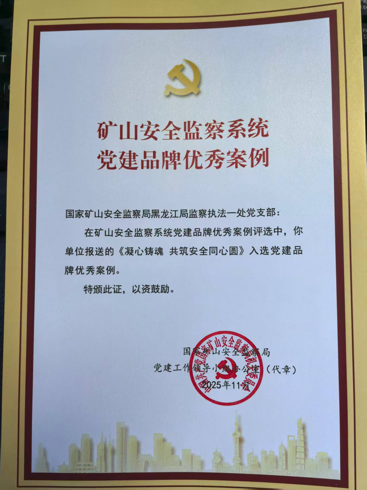 近年来,黑龙江局党组坚持以习近平新时代中国特色社会主义思想为指导,紧扣矿山安全监察主责主业,推动党建与业务深度融合。通过强化理论武装、建强支部堡垒、激励党员干部争当“三锋”模范等措施,引导党员干部在监察执法、应急救援等任务中挺膺担当、冲锋在前,以实际行动践行忠诚担当。此次获奖正是黑龙江局持续强化党建引领、提升工作质效的生动体现。