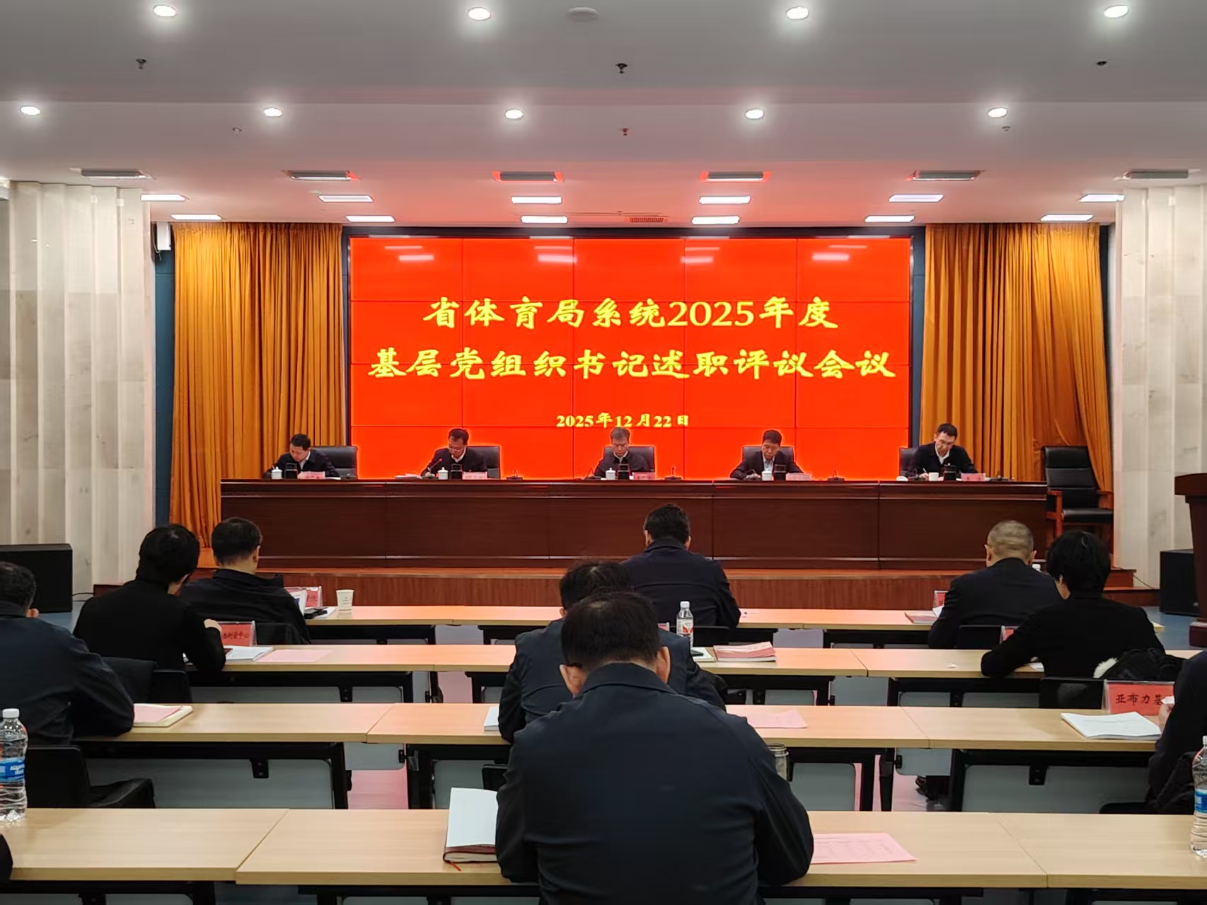 12月22日,省体育局召开2025年基层党组织书记抓党建工作述职评议大会。省体育局党组成员,驻局纪检监察组、所属各单位党政负责人及机关各处室主要负责同志参加会议。省体育局党组书记、局长王献宇在会上作点评总结讲话。
