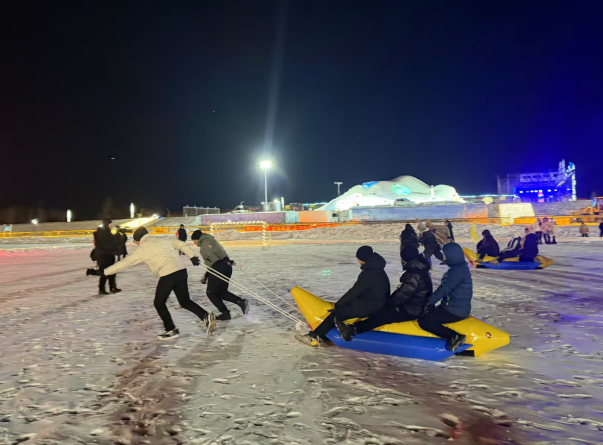 本届冰雪运动会吸引了市直机关180余支队伍踊跃参赛,开幕式首日进行的是雪地香蕉船项目,赛场上,运动员们驾乘着香蕉船在雪地上疾驰穿梭,不畏严寒,奋勇争先,既有速度与力量的比拼,也有协作与默契的展现;赛场外,欢声笑语与加油呐喊驱散了冬日严寒,将比赛一次次推向高潮,构成了冬夜雪地里一道动人的风景线。接下来,冰上自行车、雪圈拉力赛、雪地障碍跑、雪地滚筒球和打出溜滑等五个项目将分阶段展开角逐。