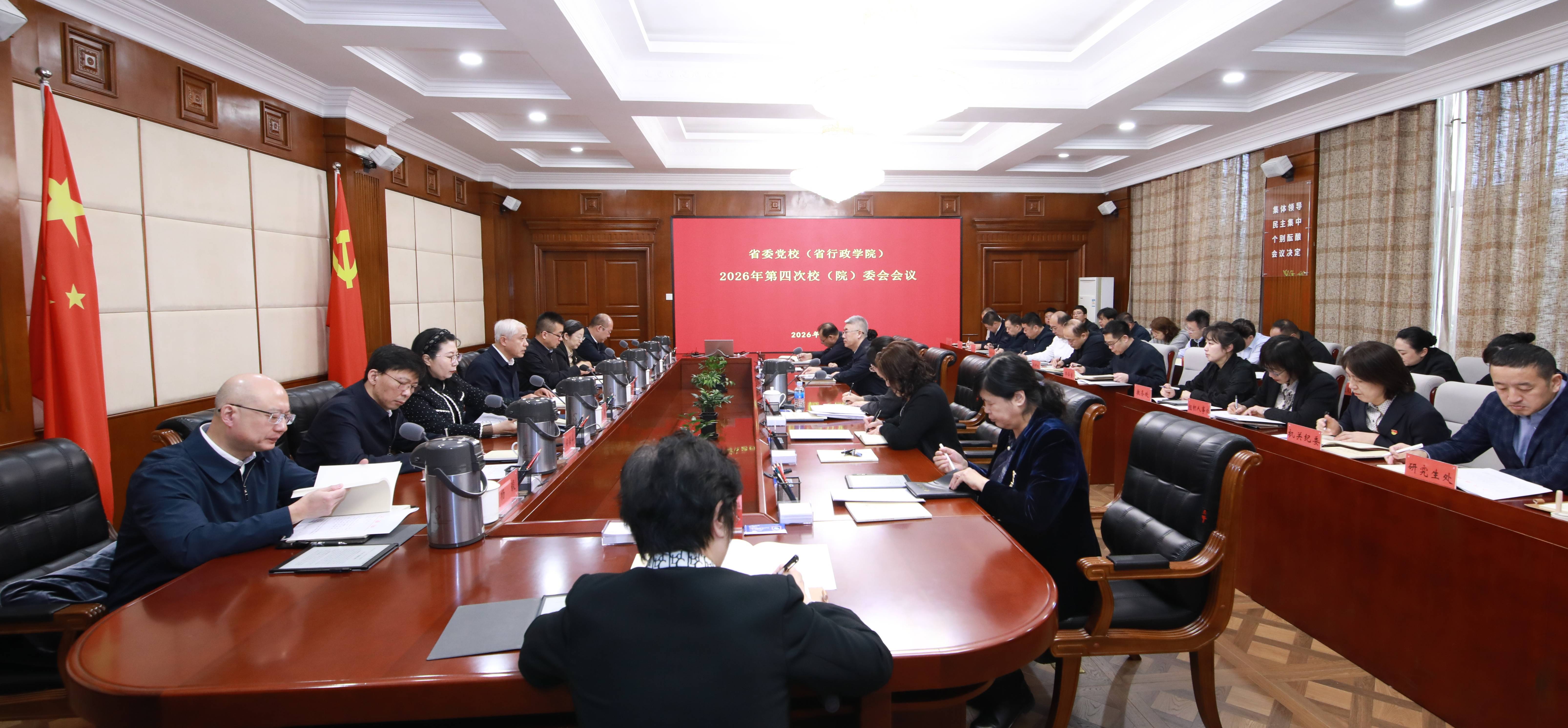 3月5日,省委党校(省行政学院)召开校(院)委会会议,深入学习贯彻习近平总书记关于树立和践行正确政绩观的重要论述,传达学习中央党的建设工作领导小组会议精神、中央办公厅有关通知要求、省委常委会会议精神和全省树立和践行正确政绩观学习教育实施方案,研究部署启动树立和践行正确政绩观学习教育工作。常务副校(院)长周英东主持会议并讲话,校(院)委班子成员出席会议。