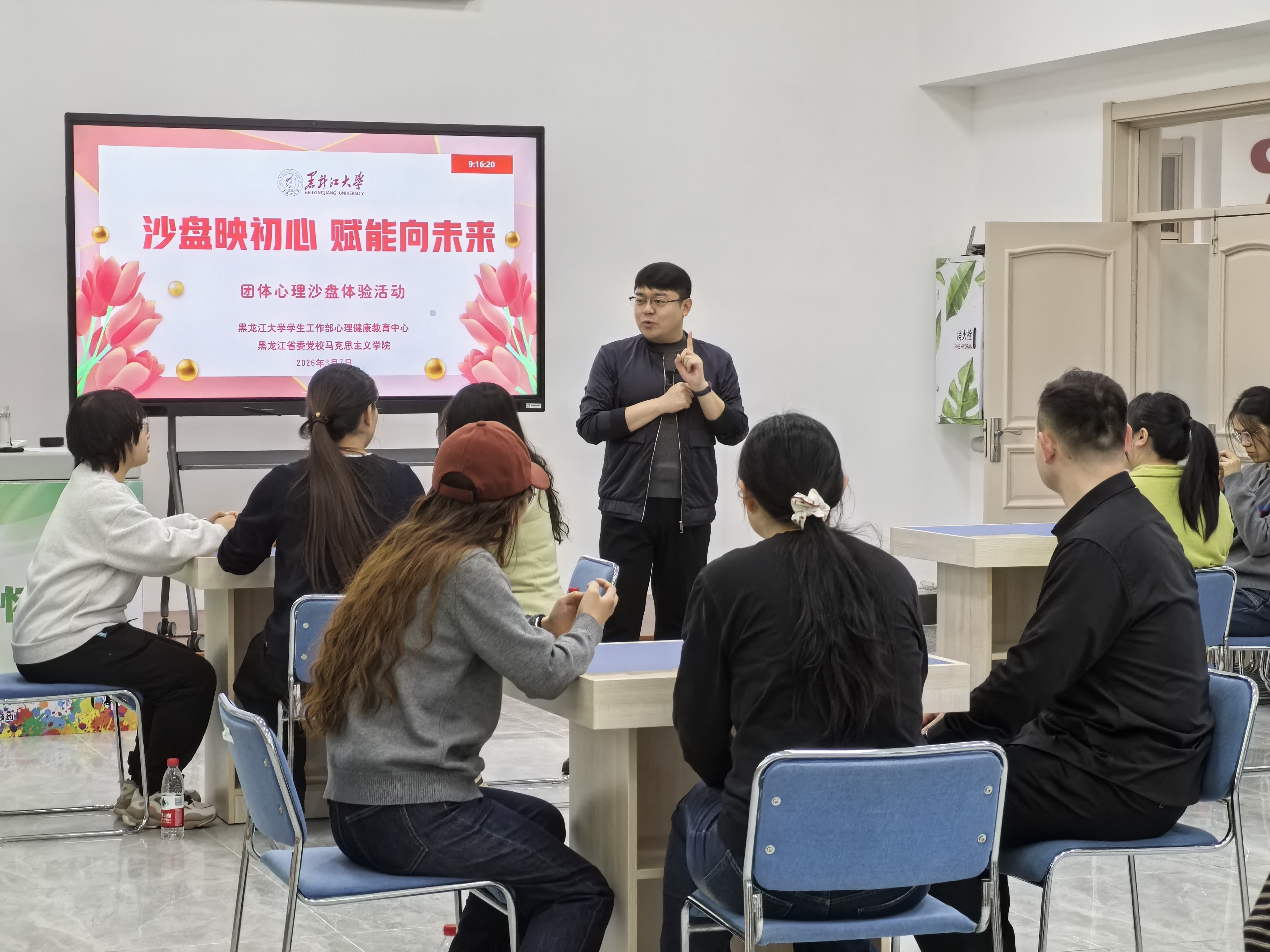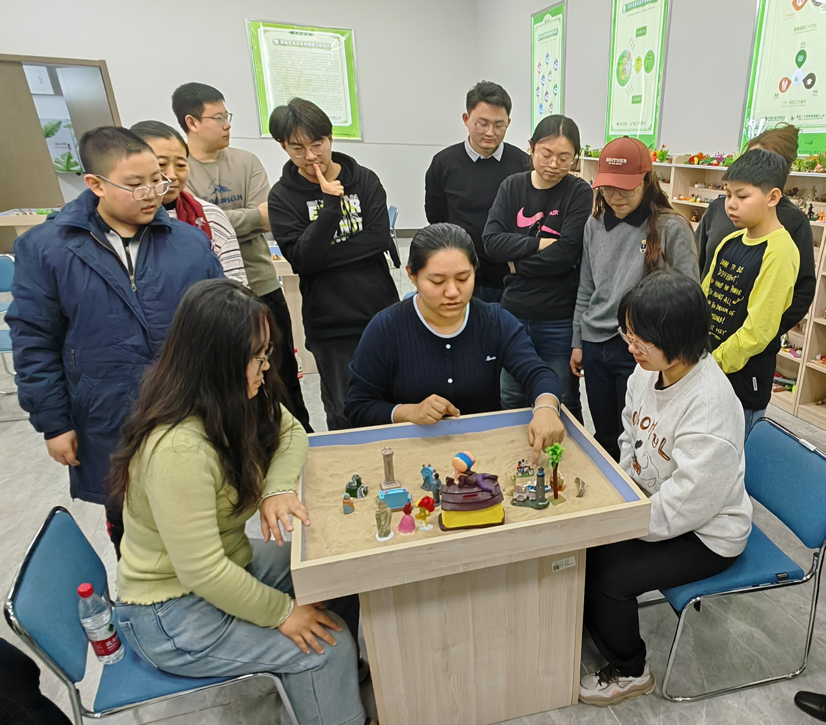 活动现场,首先由黑龙江大学心理健康教育中心李传英老师详细介绍了中心的建设历程、功能布局及心理健康教育、咨询辅导、团体活动等主要工作,让参与者对中心的工作理念与服务体系有了全面直观的了解,并组织教职工、教职工子女及研究生共同开展沙盘游戏。