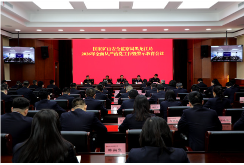 3月16日,国家矿山安全监察局黑龙江局召开2026年全面从严治党工作暨警示教育会议,深入学习贯彻习近平总书记关于党的建设的重要思想、关于党的自我革命的重要思想,全面贯彻党的二十届四中全会、二十届中央纪委五次全会精神,认真落实国务院第四次廉政工作会议以及应急管理部、国家矿山安监局全面从严治党工作部署,通报2025年党风廉政建设和反腐败工作情况,检视问题,谋划当下,坚定不移推进全面从严治党向纵深发展。