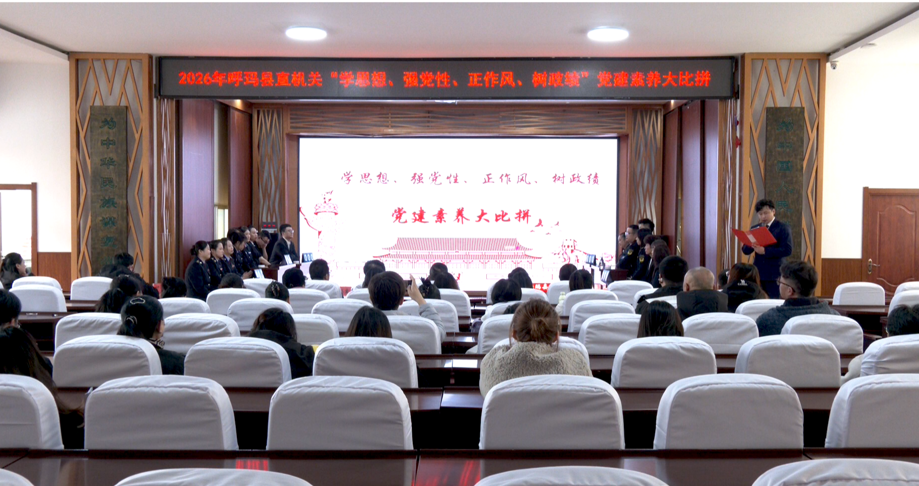 为深入学习贯彻习近平新时代中国特色社会主义思想和党的二十届四中全会精神,深化“红心永向党・奉献在边疆”党建载体,推动机关党建与中心工作深度融合,近日,2026年呼玛县直机关“学思想、强党性、正作风、树政绩”党建素养大比拼决赛在园西社区初心学堂隆重举行。县直机关6支晋级代表队同台竞技、以赛促学,80余名机关党员干部现场观赛。
