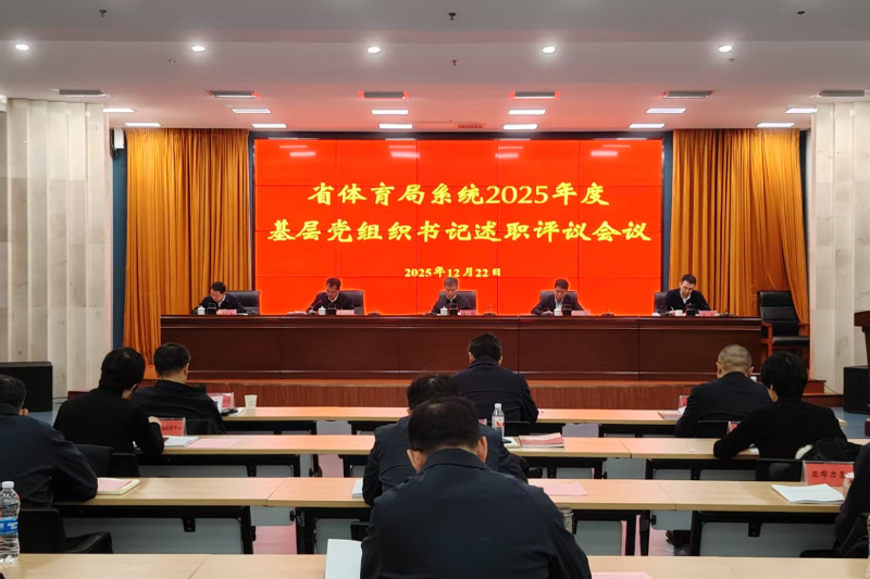 机关党委2025-12-2312月22日,省体育局召开2025年基层党组织书记抓党建工作述职评议大会。省体育局党组成员,驻局纪检监察组、所属各单位党政负责人及机关各处室主要负责同志参加会议。省体育局党组书记、...