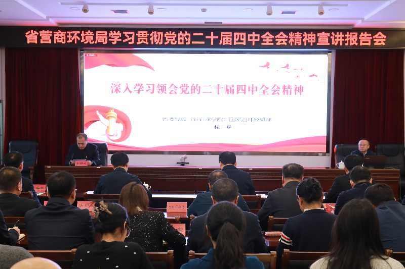 党组(党委)2025-12-1712月16日,省营商环境局召开学习贯彻党的二十届四中全会精神宣讲报告会。省委宣讲团成员,省委党校(省行政学院)国家治理教研部主任、教授张超作宣讲报告。省局党组班子成员、全体党员干部...